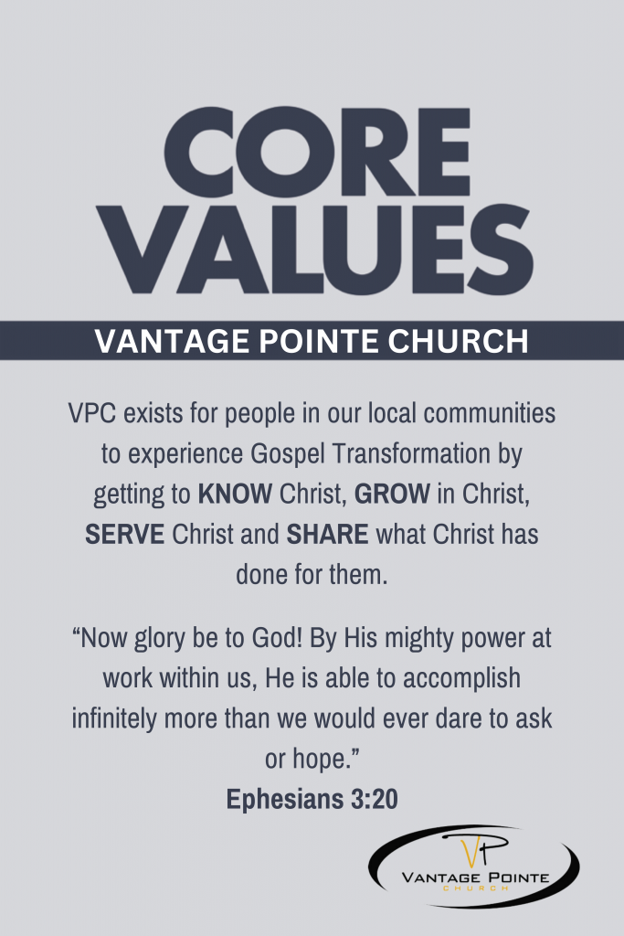VP Mission Statement: Making disciples for the Glory of God and for the Good of our Community.