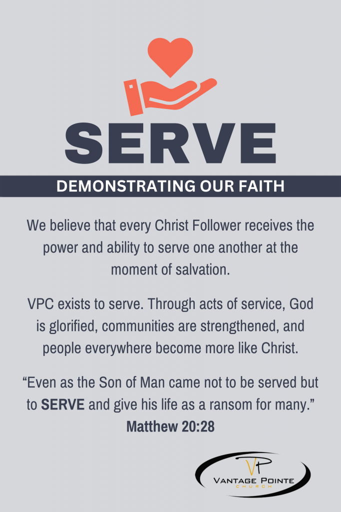 ENABLED BY GENEROSITY – At Vantage Pointe Church many practice tithing for the support of Christ’s body, the church, as God commands. Scripture teaches that giving 10% of our income is a good starting point for a standard of giving. The giving of tithes and offerings is a form of worship to Jesus Christ and is an expression of the relationship between the individual giver and the Lord.